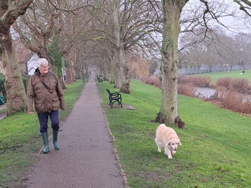 We walked Ellie at Kearsney. She has always run to jump in the stream. Not today. I don’t think she is as confident any more in getting out. We didn’t stop at the coffee shop either (can’t drink anything hot!). Ellie is a creature of habit and so pulled to go for a coffee!!! She was disappointed we didn’t stop.