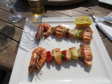 As we were in Girne we decided to go a little further to Çatalkoy where we heard there is a newish restaurant which we hadn’t been to before. It’s called The Kitchen and is next door to Supreme Supermarket. It was so nice we sat outside. Charming waiters and such fresh fish! Mal had the fish skewers with prawns and I had Sea Bass. They both looked so good we swapped half. Really top class food. They have a lot more than fish on the menu and on Sunday’s they told us they do Kleftico and have over 100 people in for Sunday lunch! It’s a huge restaurant although it doesn’t look it from the outside, with a large play area at the side for the kids. We were really impressed. A soft drink, Efes, large water and our main courses was 82tl.