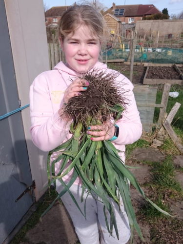 After lunch we went to the allotment. I think Ellie was worn out from the morning!