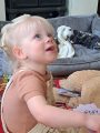 In the morning Sol, Milly, Luna and Dalimar (last two our great grandchildren) came to see us. They are down from Lancashire for the weekend. So nice of them to come and see us. It is the first time we have met little Dali. He is so lovely and such a happy child. Luna is a “terrible two” and wanted to pick Ellie up and play with her, sometimes quite roughly but Ellie is so laid back she doesn’t bother.