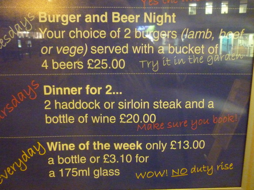 We had a wander around Chippenham and then decided we may as well eat in the hotel, at least then I could have a drink. Then when we sat at our table the waitress told us that Thursday there was a special deal!