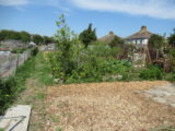Late morning we went to the allotment. I ended up with a blister on my right hand doing the weeding. Ellie hides in the shade. We had our first lot of radishes.