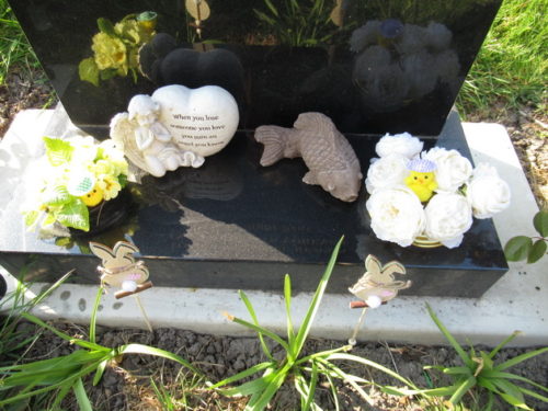 I asked Mal to get some fresh flowers and lemons at the Co op. They had neither! The flowers were for Torin at the cemetery as the others were dying, so I took some silk flowers round there instead. I also took some Easter decorations. I am sure he is looking down and laughing at me!