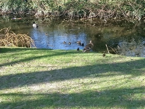 Ellie woke me early and she obviously had a bad tummy. I decided to stay up and go for an early morning walk. It was lovely and so very peaceful and on the way back Ellie and I watched the ducklings, she just sat by my side while I took photos. One of the ducks has two ducklings and the other has 6. I just hope the sea gulls don’t take them as they so often do, now more than ever if there are no chips around!
