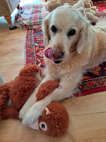 As usual, once home , Ellie was hungry, of course she missed her breakfast! In the evening I started her on the strong pain killers and we have to wait to hear from the orthopaedic surgeon, the result of the X Ray. But they think it is her cruciate ligament, we hoped it wouldn’t be.