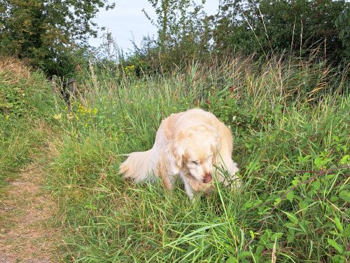 An early morning walk with Ellie in light rain, quite refreshing.