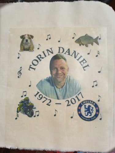 Back home and we then completed our square for the “Speak Their Name” quilt. Torin  loved music, fishing, his first bulldog, motorbikes and Rossi and Chelsea!