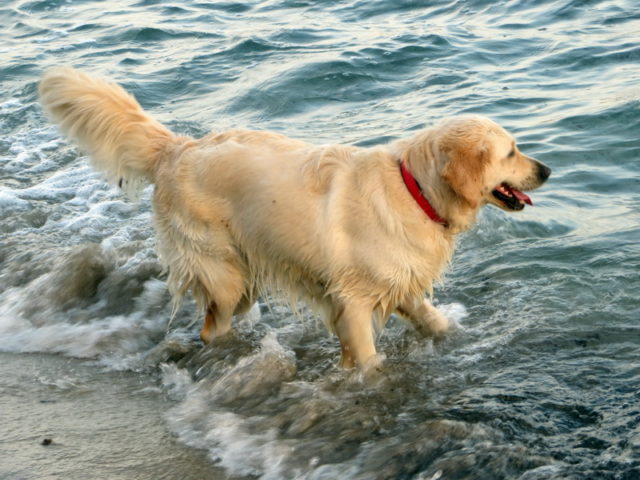 Down to the beach with Ellie. After the storms there was a lot of sea weed all along the coast. Ellie loved rolling in it.